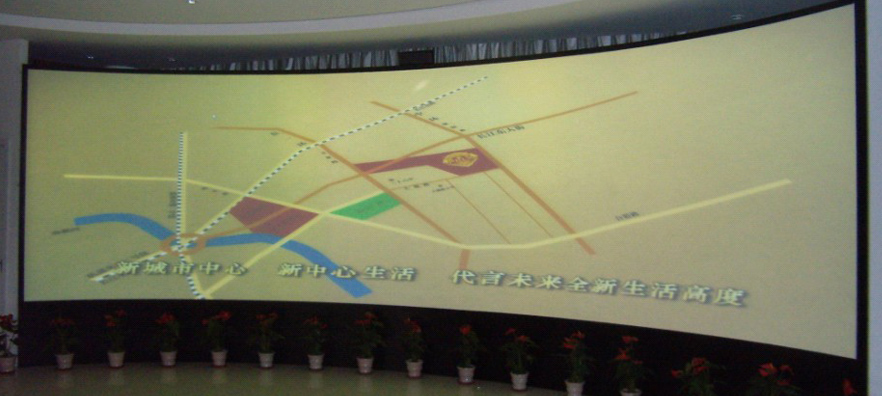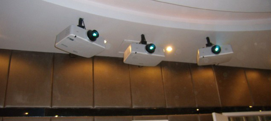 三台6000流明投影机\高配置播放服务器一台\三通道融合拼接系统\YAMAHA 5.1声道环绕影院扩声系统\120°弧形硬幕含支架\分辨率为2560*768三维影片\ipads影院播放控制系统